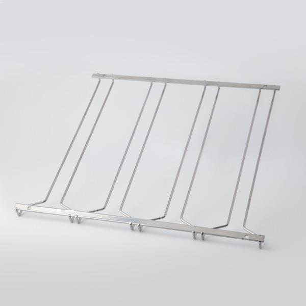 Idéal pour fixer sous un placard ou une étagère, cet égouttoir en acier peut contenir jusqu’à 12 verres.