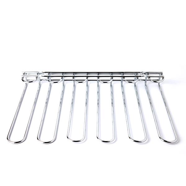 Porte verre mural fonctionnel. Ce range verre en métal chromé peut contenir jusqu’à 20 verres à pied et s’adapte à de nombreux modèles. Se fixe facilement au mur avec des chevilles. Idéal pour placer au dessus d’un évier.